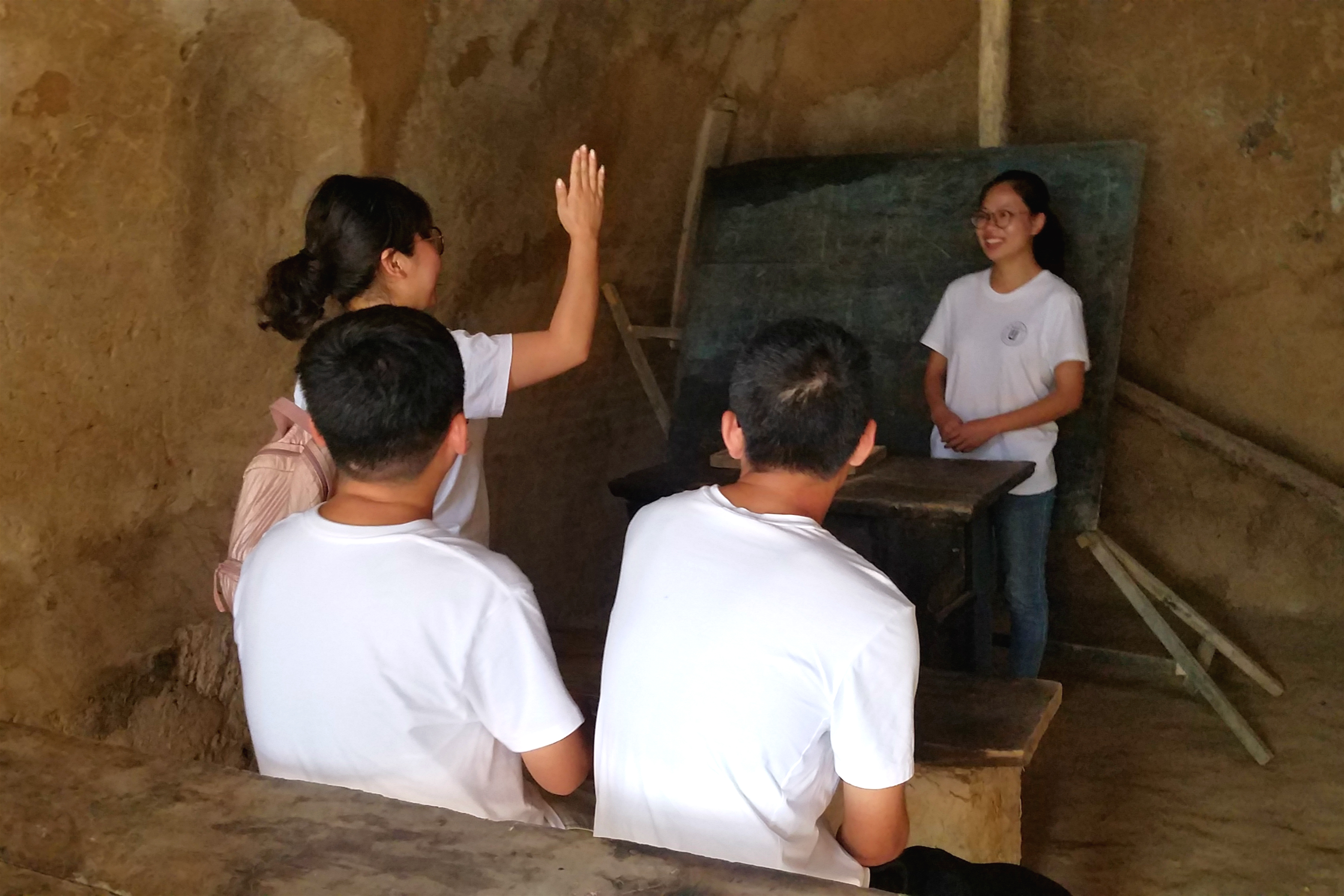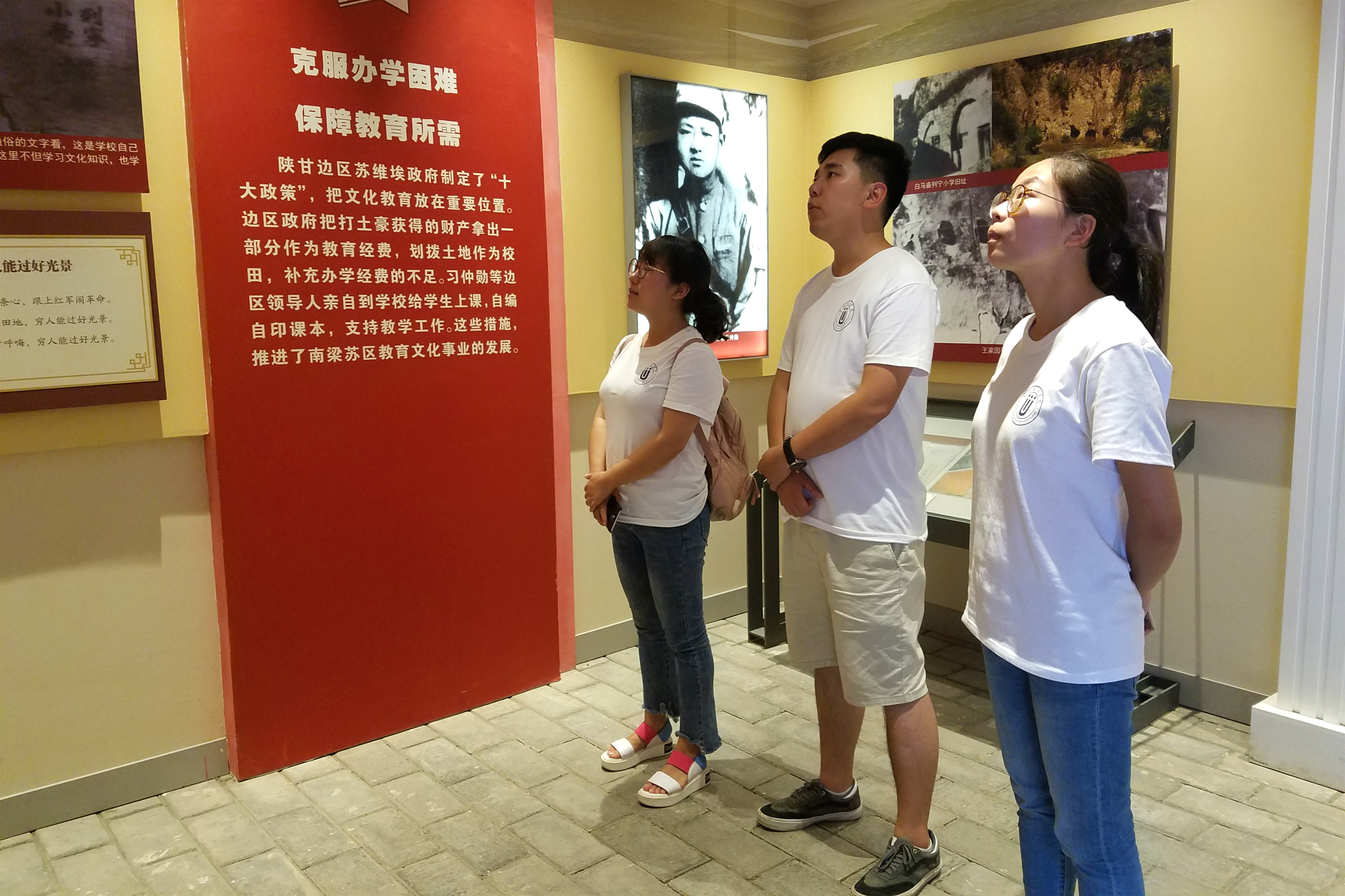 实践团成员先后参观了列宁小学的校史馆、学校遗址。在参观校史馆时了解到建校目的、历程和发展。同时有幸见到早期教学课本及教学资料。实践团成员在学校遗址的窑洞里重现课上学习的历史画面,见到当年上课时用的石板和课本时深刻的体会到根据地为发展边区教育事业所付出的艰苦和努力。