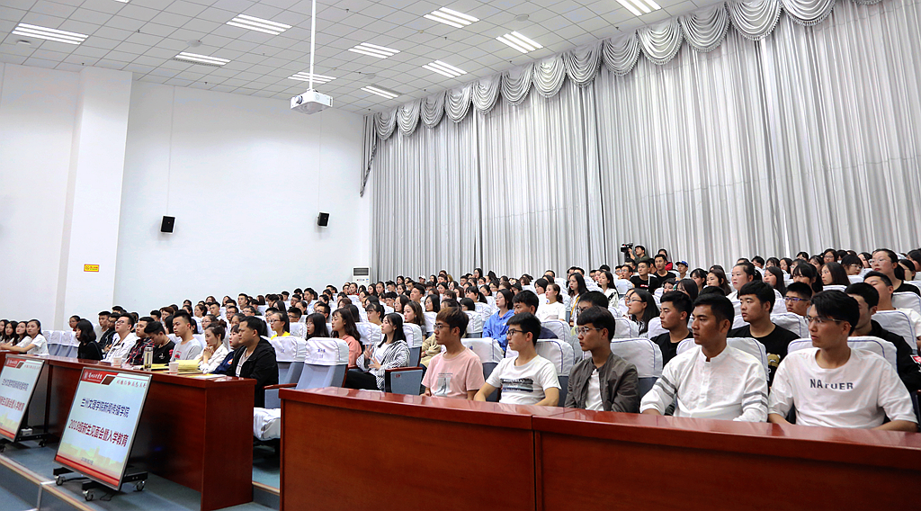 9月20日下午,w优德88中文版在综合楼学术报告厅举行2018级新生见面会暨新生入学教育第一课。公司领导班子成员出席会议,18级新生班主任及部分无课教师,2018级全体新生参加会议,副经理刘锐主持会议。