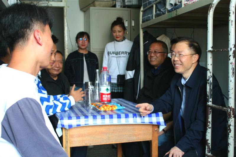 普书记一直关切广大青年成长与思想状况,在前期深入员工宿舍广泛调研的基础上,针对员工的学习、生活等方面思想困惑,详细询问了同学们在生活和学习上还有哪些有啥难处,与同学们亲切谈心,和蔼慈祥。同学们争相恐后,踊跃发言,就自己在成长中的困惑、烦恼以及生活方面诸如水电供应、宿舍拥挤等问题敞开心扉,交流思想。普书记认真听取同学们的情况反映,耐心细致解答。最后普书记指出,宿舍建设与个人兴趣发展是学校的办学条件与大家的想法需求之间的矛盾,学校会尽最大力度处理,也需要同学们的理解和支持。